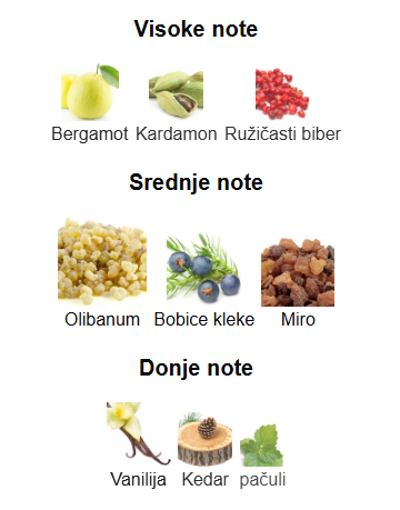 Srednje note: Olibanum, Bobice kleke, Miro