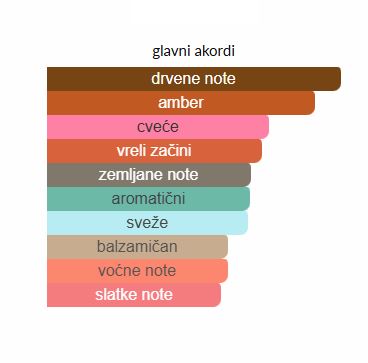 - Gornje note: Labdanum, bigarade (gorka pomorandža), kardamon, tamjan
