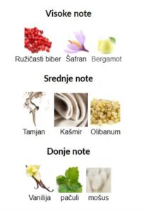 - Donje note: Heliotrop, Ambroksan, Ylang-Ylang