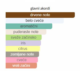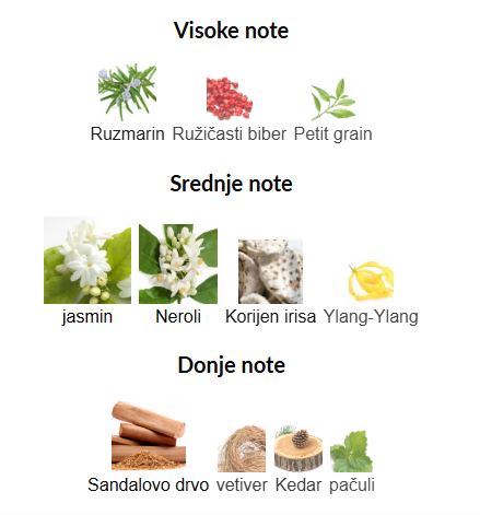 • Srednje note: Jasmin, Neroli, Korijen irisa, Ylang-Ylang