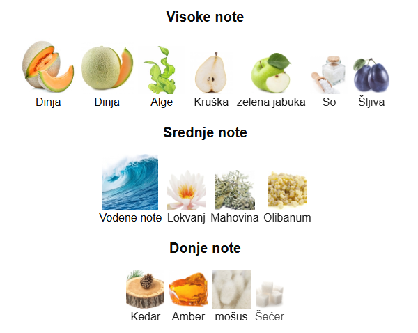 Srednje note: vodene note, lokvanj (voden lisko), mahovina (hrastova mahovina), olibanum (tamjan)