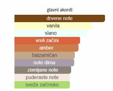 - Bazne note: Vanilija, Sandalovo drvo, Mahovina