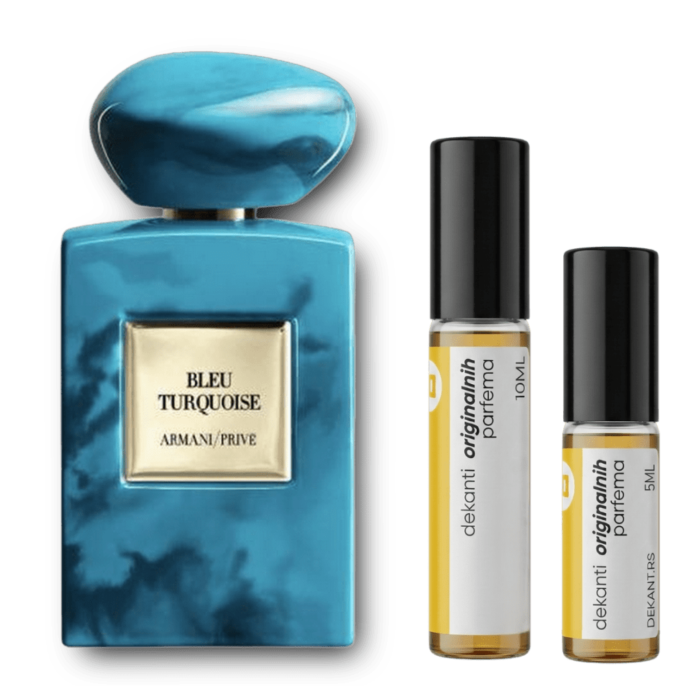 Armani Privé Bleu Turquoise je intrigantan, mističan i luksuzan amber-začinski miris za žene i muškarce, koji kombinuje slane, smolaste i cvetne akorde sa toplom, drveno-balzamičnom završnicom. Lansiran 2018. godine, kreiran od strane Auréliena Guicharda, ovaj parfem odiše egzotičnim šarmom, dubokom elegancijom i senzualnom slojevitošću.