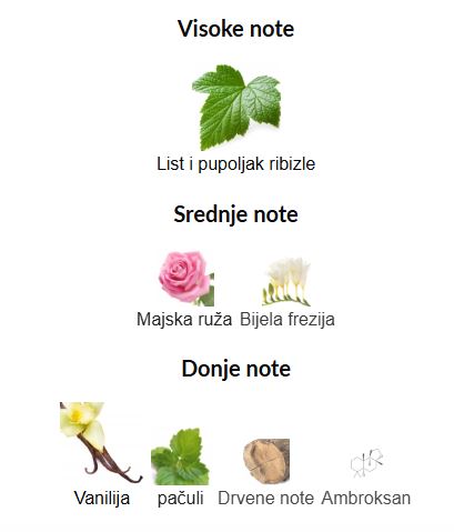 - Srednje note: Bela frezija, Majska ruža