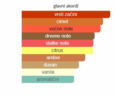 Predstavljen kao eksplozivni drveni i začinski orijentalni miris, savršen “spoj muževnosti i iskušenja.” Kompozicija kombinuje egzotično drvo i začine, sa naglaskom na tri ključna akorda: cimet, crveni kedar i duhan.