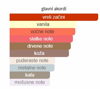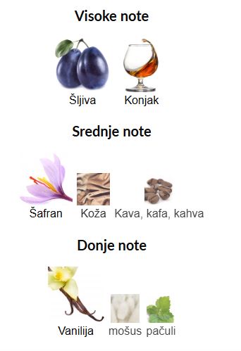- Srednje note: Šafran, Koža, Kava (kafa, kahva)