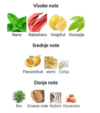 - Gornje note: Nana, Rabarbara, Grejpfrut, Konoplja
