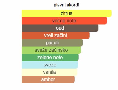 - Bazne note: Agar (Oud), Vanilija, Ambroksan