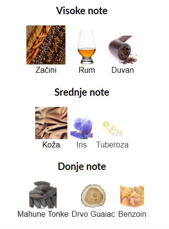 - Donje note: Mahune Tonke, Drvo Guaiac, Benzoin