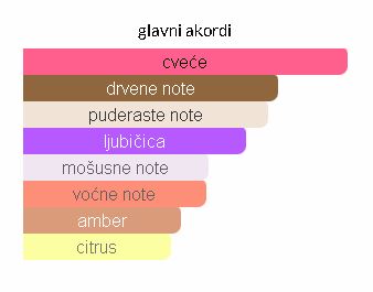 - Srednje note: Magnolija, ljubičica i sandalovo drvo. Ove cvetne i drvenaste note dodaju dubinu i eleganciju.