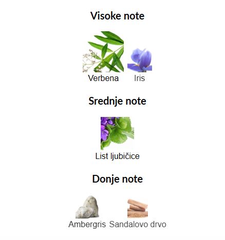 - Bazne note: sandalovina, ambergris