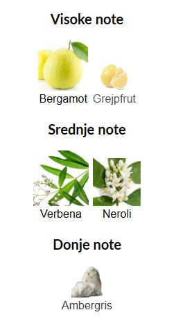 • Gornje note: Bergamot, Grejpfrut