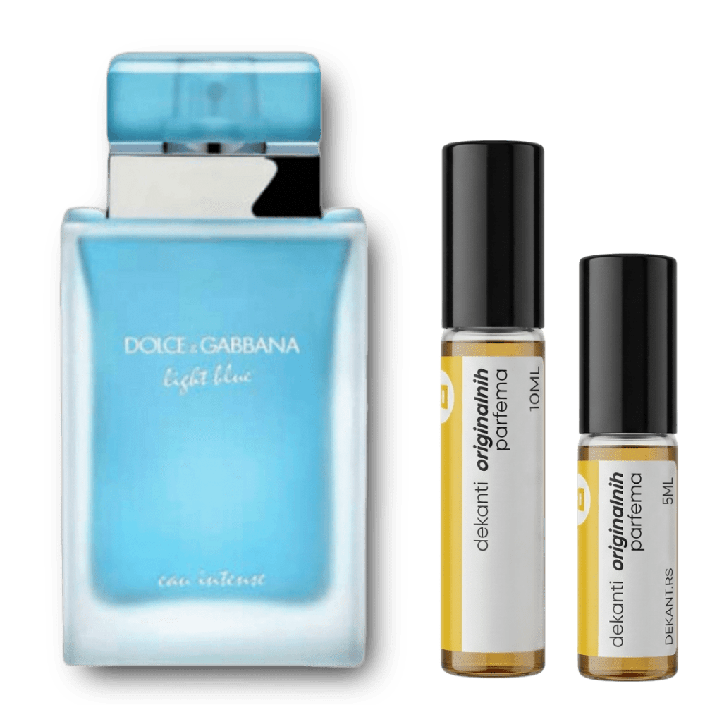 Light Blue Eau Intense je opisan kao “aura mediteranske lepote”. Ovaj parfem smanjuje intenzitet citrusa i pojačava cvetne note kompozicije. Sadrži akorde limuna i zelene jabuke u vrhu, srce mirisa čine neven i jasmin, dok se baza sastoji od ambernog drveta i mošusa. Kreaciju potpisuje parfimer Olivier Cresp.