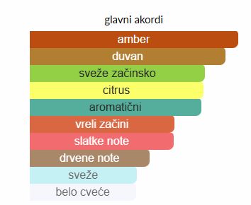 - Srednje note: Kardamon, Džumbir, Cvet narandže