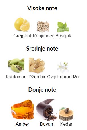 - Gornje note: Grejpfrut, Korijander, Bosiljak