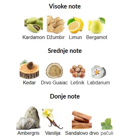 - Gornje note: kardamom, đumbir, limun, bergamot