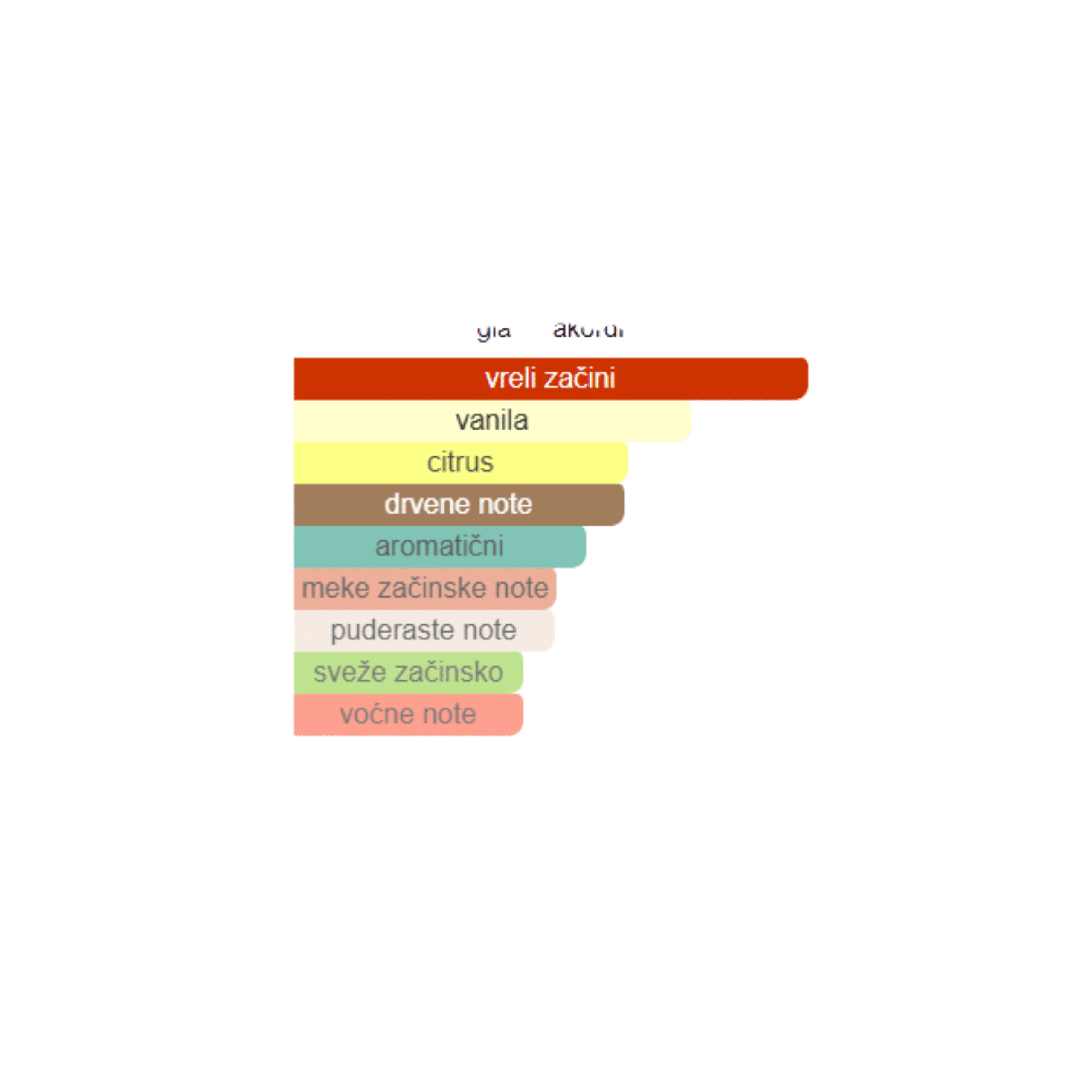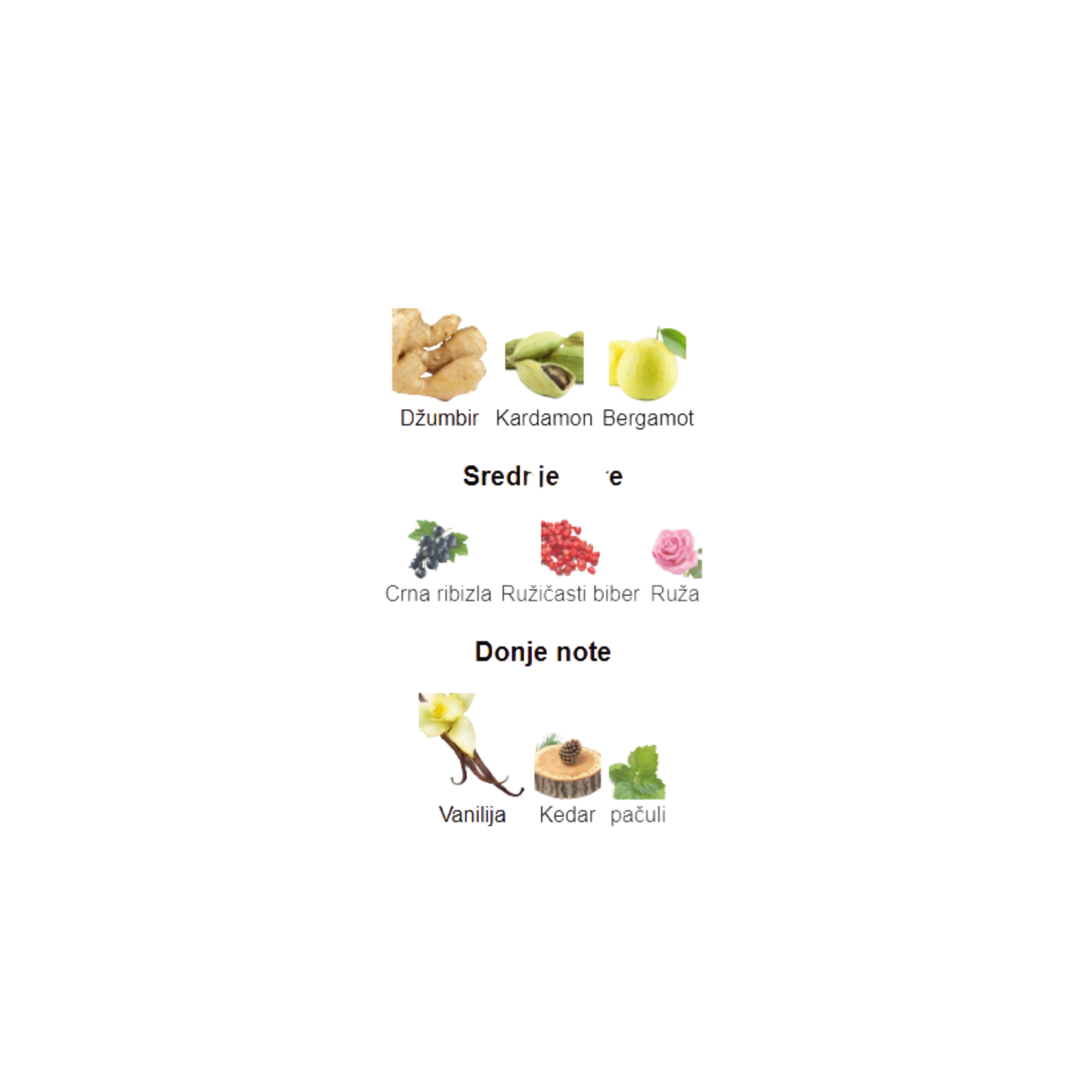 - Gornje note: đumbir, ružičasti biber, bergamot
