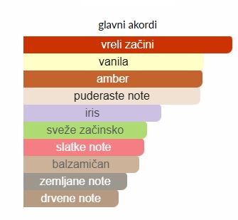 - Bazne note: pačuli, crna ljuska vanile, tolu balzam