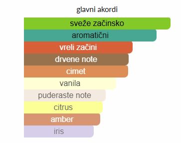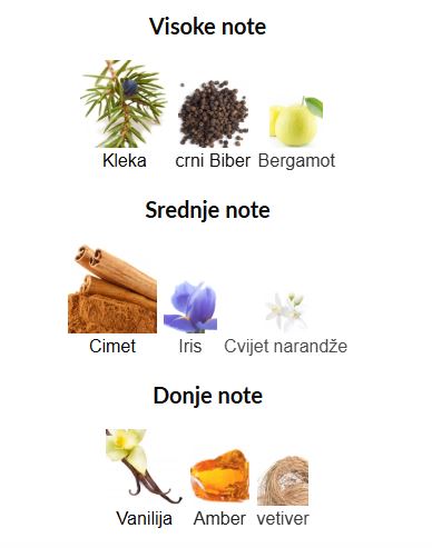 - Srednje note: Cimet, Iris, Cvijet narandže