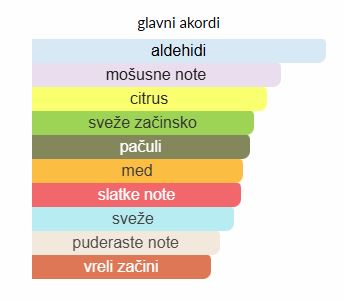 - Bazne note: Mošus, Pačuli, Amber