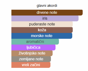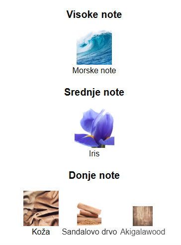 Gornja nota: morske note Srednja nota: iris Bazne note: koža, sandalovo drvo, akigalawood