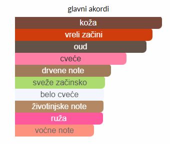 - Gornje note: Šafran, Kardamon, Indonezanski muškatni orah