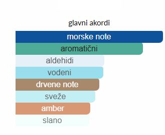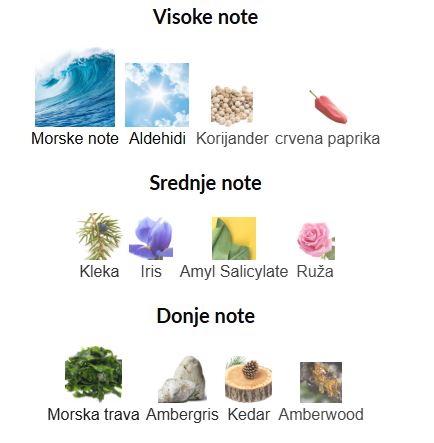 - Gornje note: Morske note, Aldehidi, Korijander, Crvena paprika