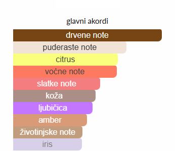 - Donje note: Vanila sa Madagaskara, Indijska sandalovina, Gajak drvo, Amber, Dodir muške kože