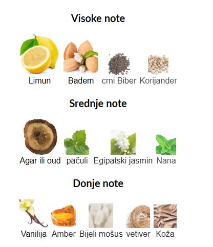 - Gornje note: Limun, Badem, Crni biber, Korijander