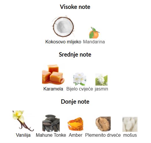 - Gornje note: Kokosovo mleko, Mandarina