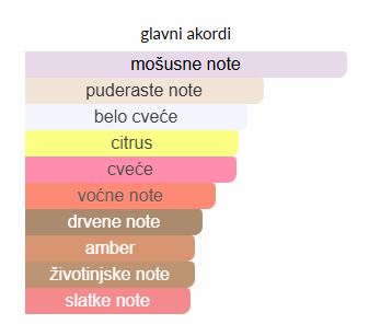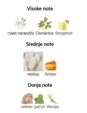 - Gornje note: Cvet narandže, Osmantus, Bergamot