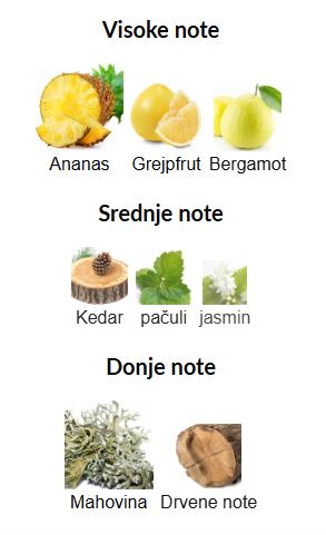 - Gornje note: Ananas, Grejpfrut, Bergamot