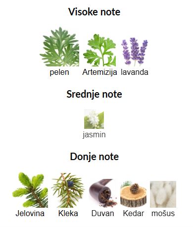 - Donje note: Jelovina, Kleka, Duvan, Kedar, Mošus