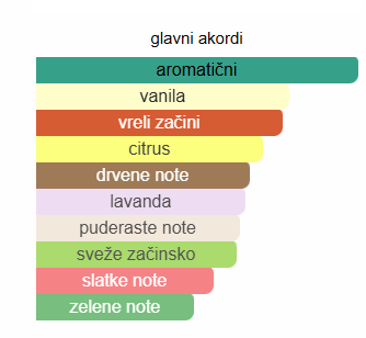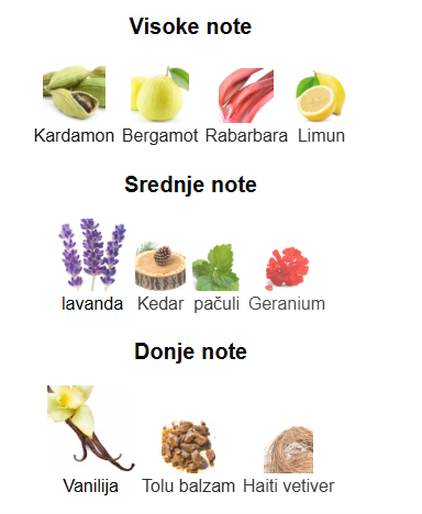 - Gornje note: Kardamon, Bergamot, Rabarbara, Limun