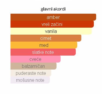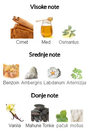 - Bazne note: Vanilija, mahune tonke, pačuli, davana