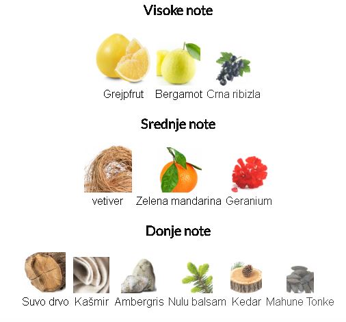 • Srednje note: Vetiver, zelena mandarina, geranium