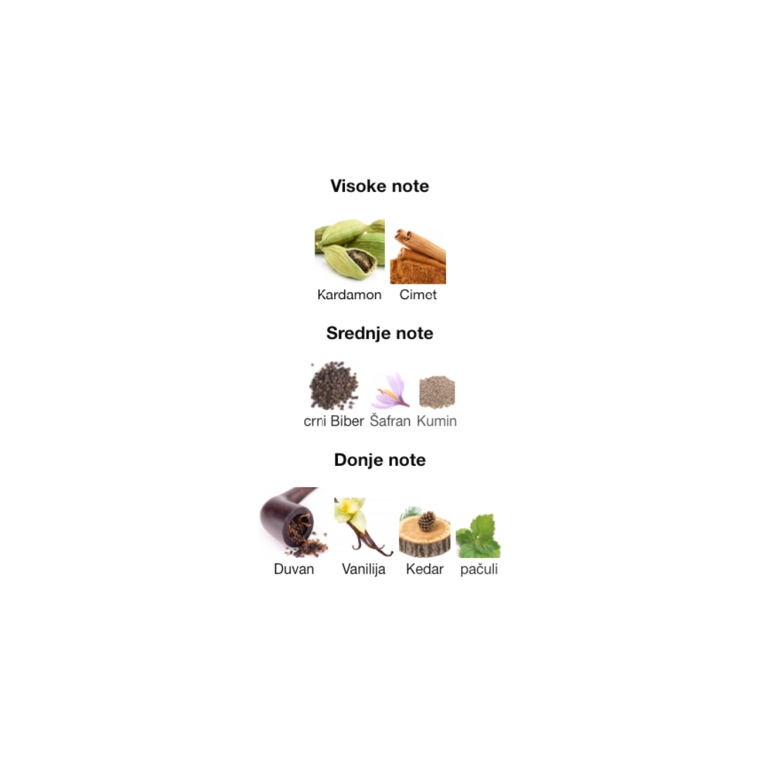 Mister Sam je direktan, intenzivan i pun samopouzdanja – baš kao lik kog predstavlja. Glavne note su kardamom, crni biber, šafran, uz toplu osnovu od duvana, pačulija i vanile. Sve to zajedno daje miris koji je začinjen, topao i pomalo senzualan.