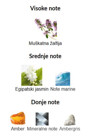 - Bazne note: Amber, Mineralne note, Ambergris