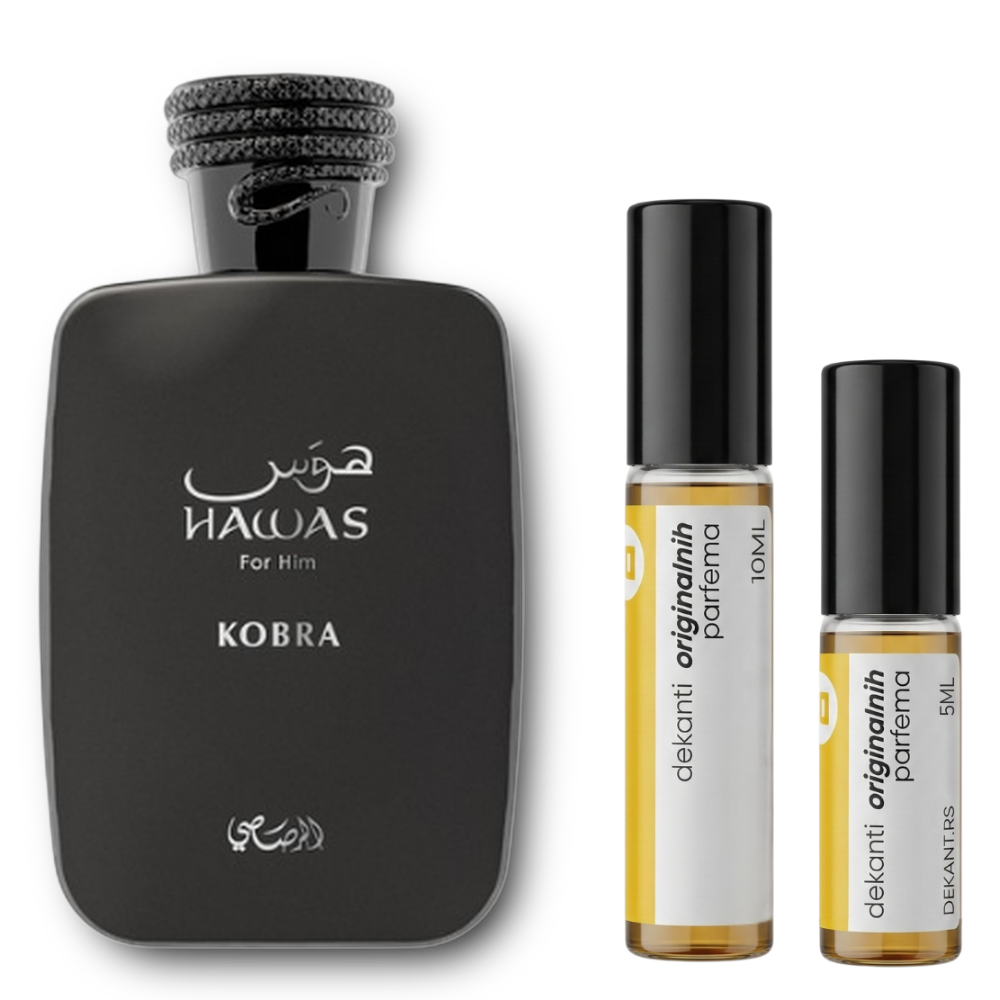 Rasasi Hawas Kobra je moderan, svež i začinski miris sa izraženom energijom i muškim karakterom. Otvara se citrusno i pikantno, zatim prelazi u aromatično-začinsko srce, dok se u bazi smiruje toplim drvenastim i mošusnim notama. Deluje sportski, ali zrelije i ozbiljnije od klasičnog Hawasa. Odličan za svakodnevno nošenje i večernje prilike.