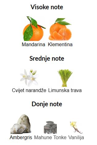 - Bazne note: Ambergris, Mahune Tonke, Vanilija