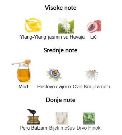 - Srednje note: Med, Hristovo cvijeće, Cvet Kraljica noći