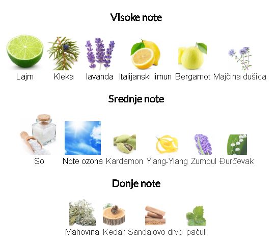 Izvrsni miris koji će vas izdignuti i osvojiti svojim očaravajućim blagim notama, koje su hladne i velikodušne, ali istovremeno tople i ljubazne.