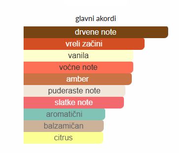 - Gornje note: Breskva, Crvena narandža, Kardamon, Heliotrop
