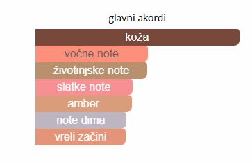 - Bazne note: Koža, Jelenja koža (black suede), Drvene note, Amberwood