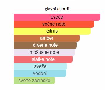- Gornje note: Kruška, Bergamot, Ljuta narandža