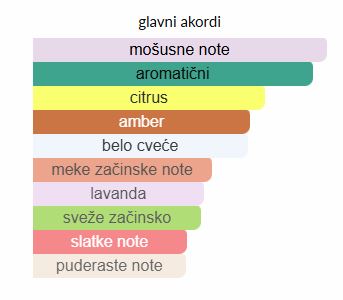 - Bazne note: Cedrovina iz Virginije, Ambrox®, mošus