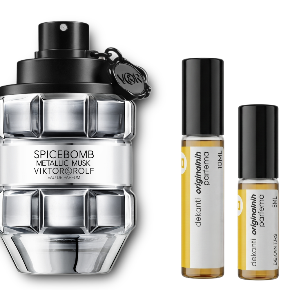 Spicebomb Metallic Musk je moderan, hladno-topao miris koji kombinuje metalnu svežinu sa začinskom energijom i čistim mošusom. Deluje urbano, oštro i muževno, ali istovremeno nosivo i elegantno. Idealan za večernje prilike i hladnije vreme, sa jakim „clean but edgy“ karakterom.