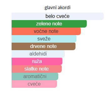 - Gornje note: Voćne note, Zelene note, Aldehidi
