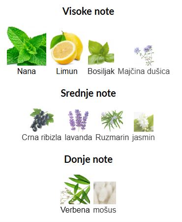 - Gornje note: Nana, Limun, Bosiljak, Majčina dušica