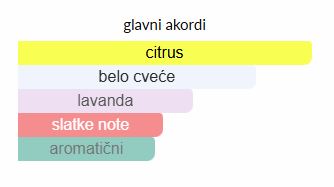 - Bazne note: Lavanda, Ambergris, Vanilija, Mošus, Kedar
